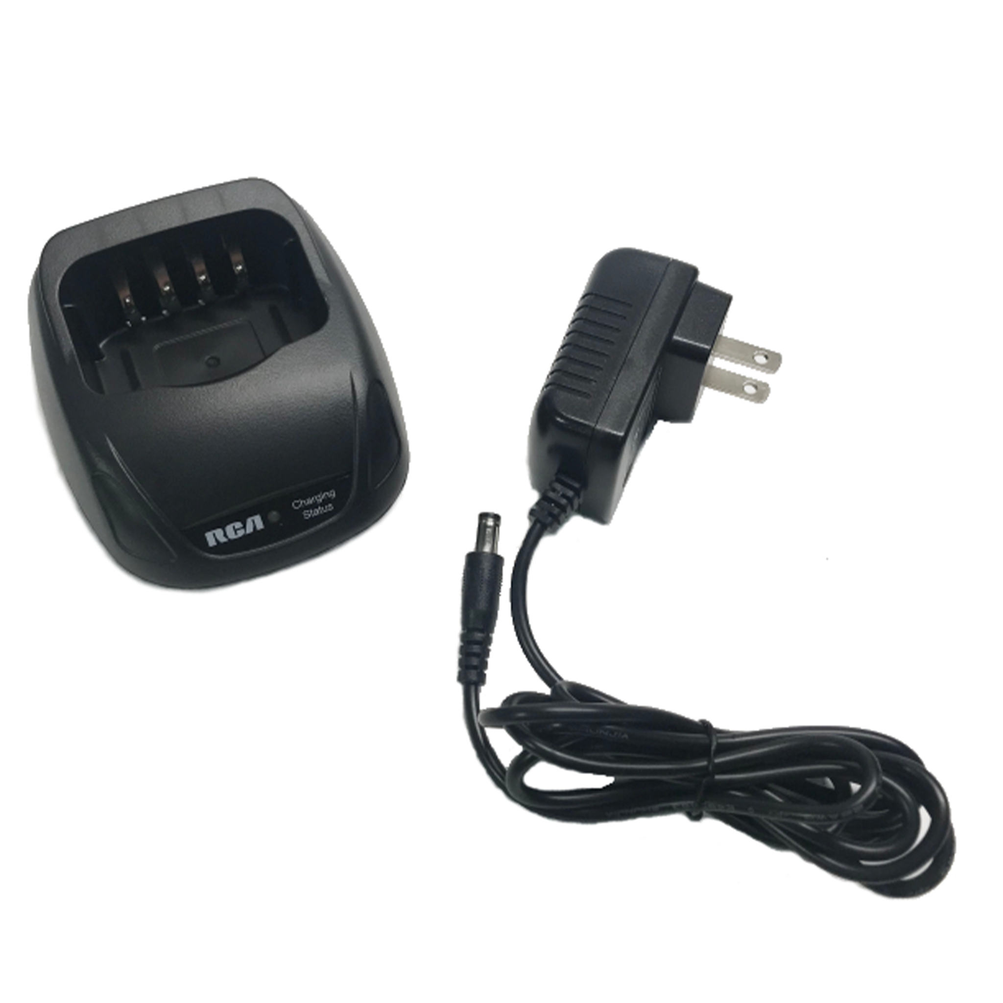 The RCA CH2001 PKG is a professional-grade single-unit rapid charging station designed for RCA handheld two-way radios. This comprehensive package includes the CH2001 charging base and the PS2001 AC power supply, providing a complete out-of-the-box solution for keeping your communication devices powered and ready for use.